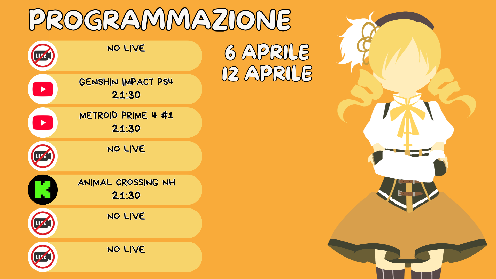 Qui potrai vedere la programmazione settimanale delle live che faccio abitualmente su Kick e Youtube! Non vedo l'ora di vedervi online per giocare con me o scoprire nuove avventure!